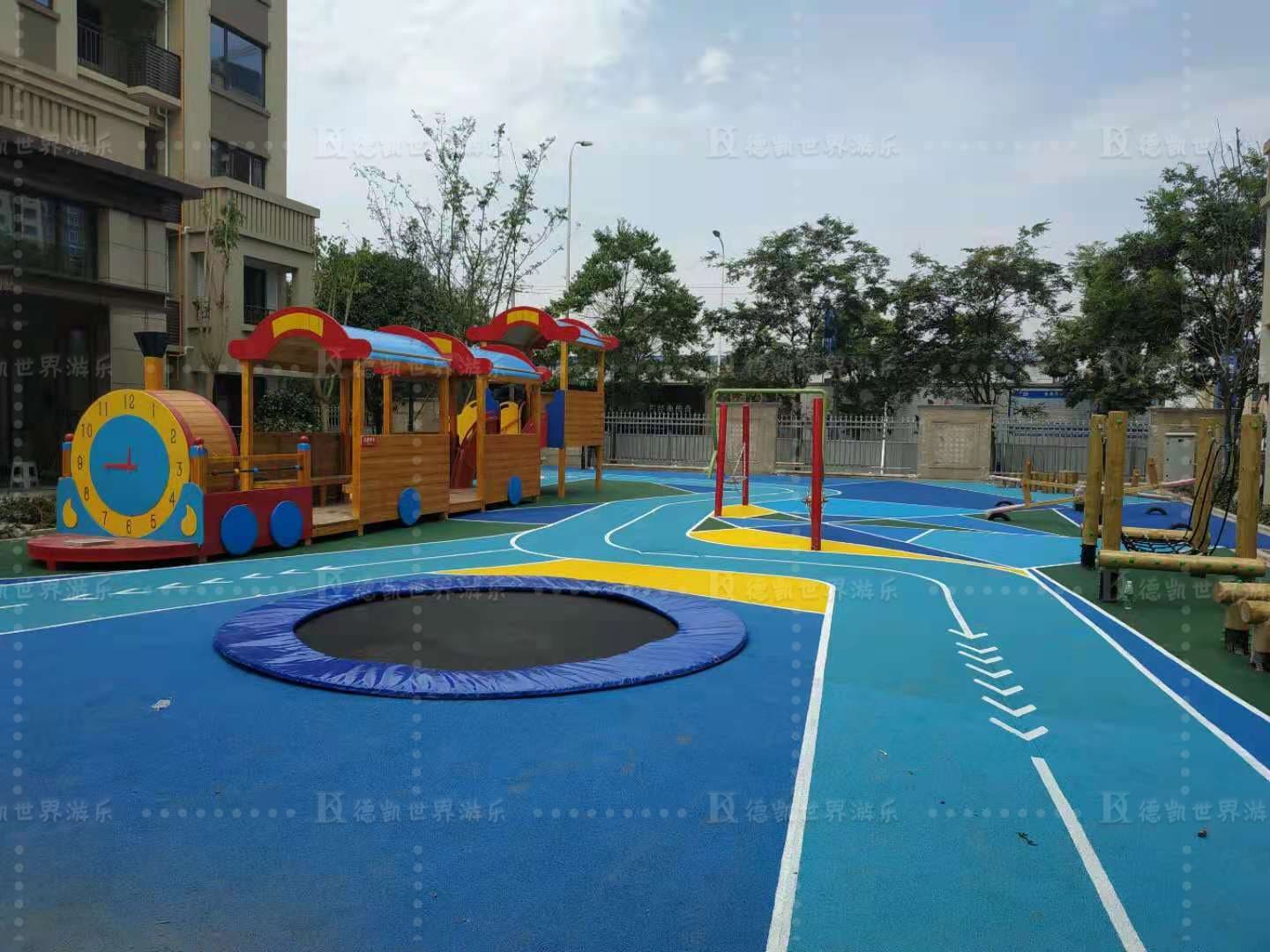 小區(qū)的兒童游樂設備種類非常的多,例如:組合滑梯、大型爬網(wǎng)、蹦床、蹺蹺板、搖馬、不銹鋼滑梯、秋千等。